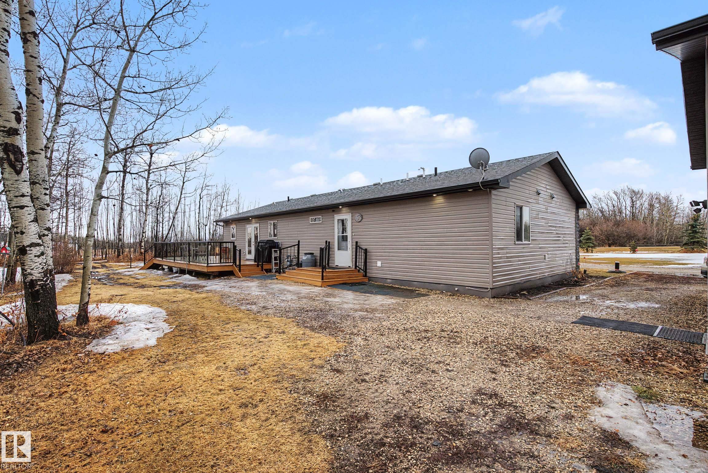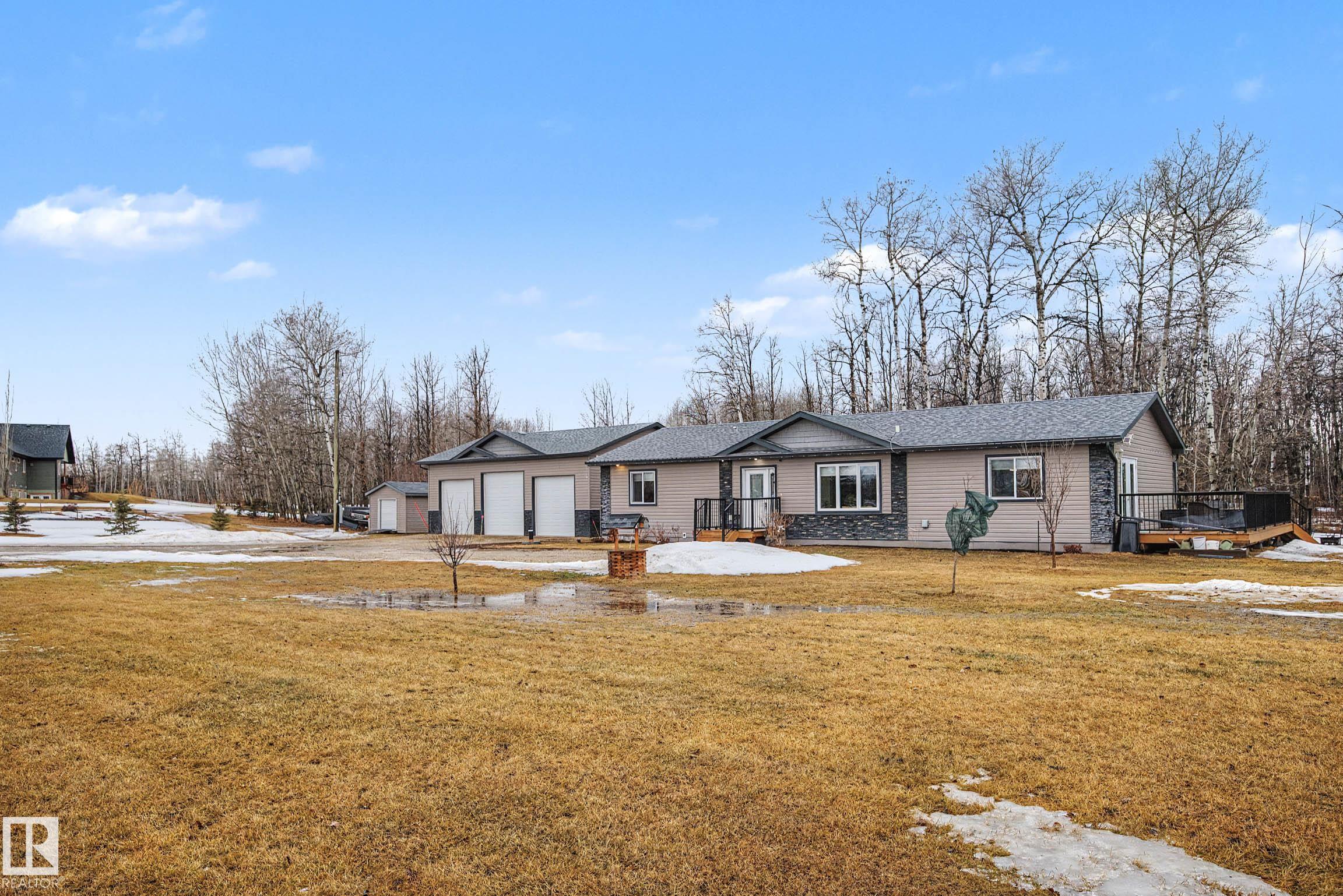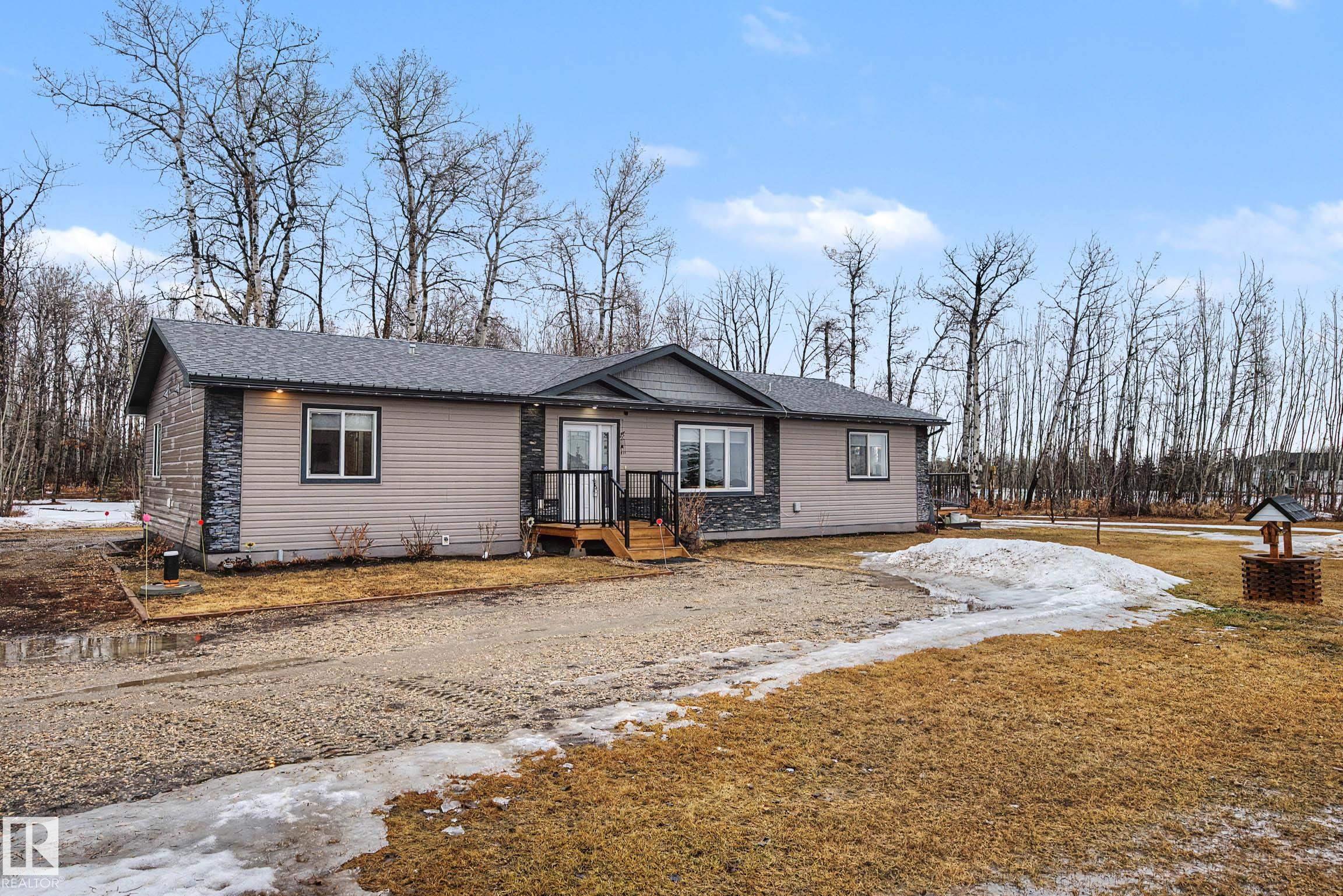 Just a short 20 min drive Northwest of Stony Plain, you will find this acreage nestled on 2.84 acres, 10 kms from Onoway. This beautifully treed acreage offers the perfect blend of fruit trees, a garden and a firepit area, as well as wired garden shed. The 1,680 sq ft bungalow features 3 spacious bedrooms, 2 full bathrooms, and convenient main floor laundry. Its bright, functional living areas make it ideal for family living or entertaining. Outside the large kitchen and dining area is a beautiful wraparoun...