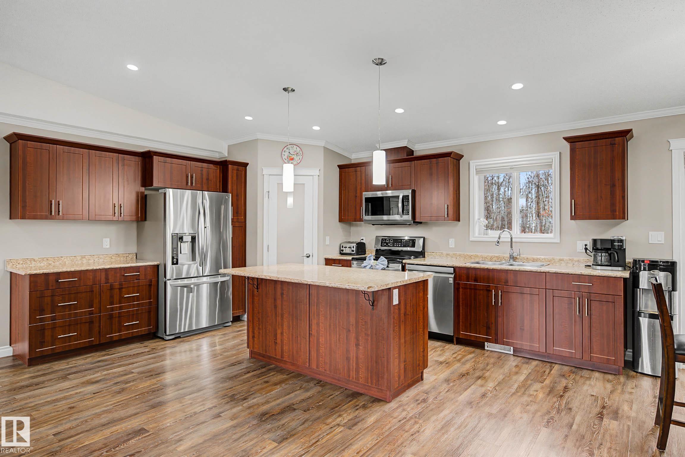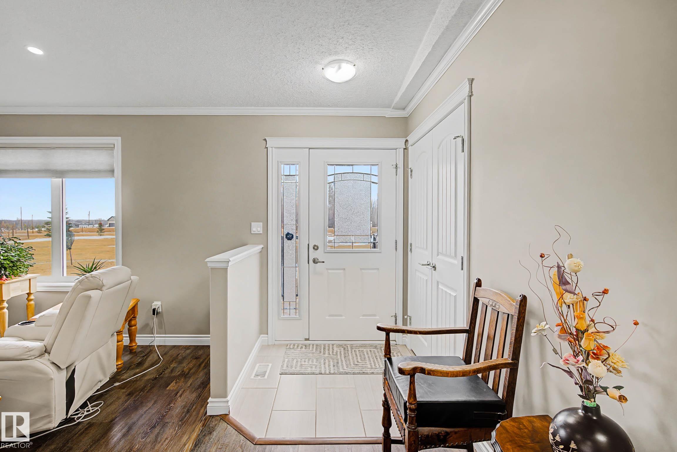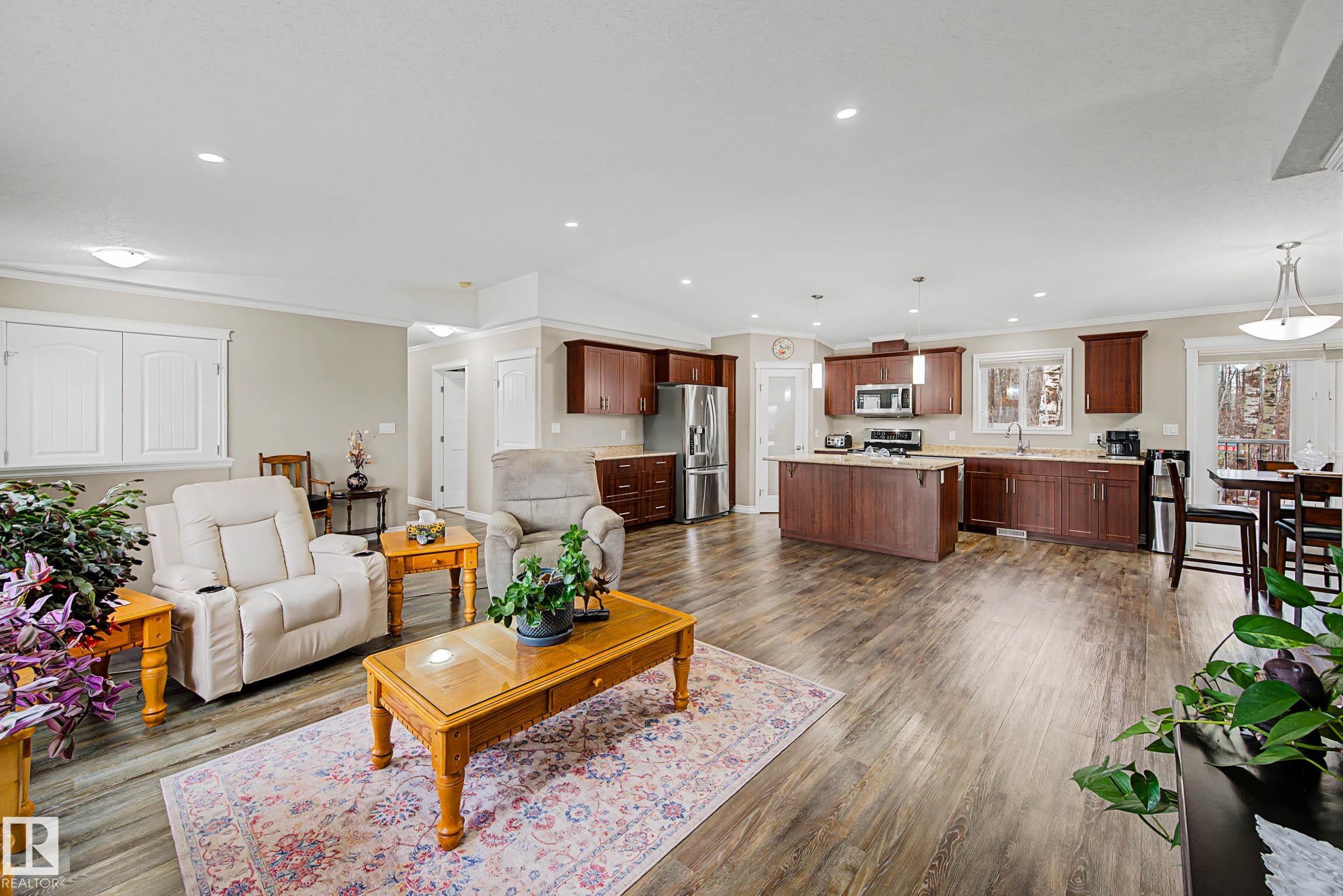 Just a short 20 min drive Northwest of Stony Plain, you will find this acreage nestled on 2.84 acres, 10 kms from Onoway. This beautifully treed acreage offers the perfect blend of fruit trees, a garden and a firepit area, as well as wired garden shed. The 1,680 sq ft bungalow features 3 spacious bedrooms, 2 full bathrooms, and convenient main floor laundry. Its bright, functional living areas make it ideal for family living or entertaining. Outside the large kitchen and dining area is a beautiful wraparoun...